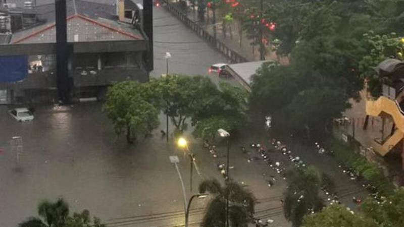 Dedi melaporkan, Jalan Raya Vila Bukit Mas banjir setinggi 60 cm.