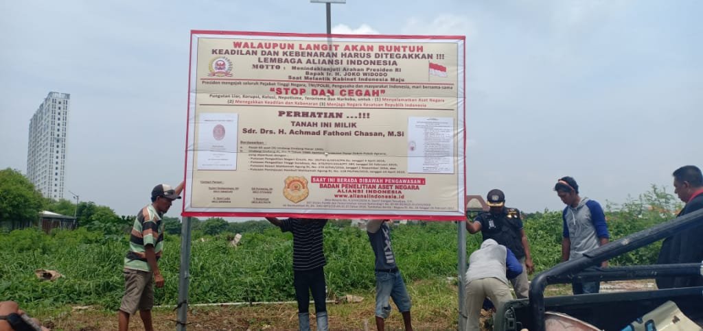 Yusten menegaskan pemasangan pengumuman itu, atas inisiatif Ketua Umum DPP Lembaga Aliansi Indonesia Badan Penelitian Aset Negara Mayjen TNI Purn. Djoni Lubis.