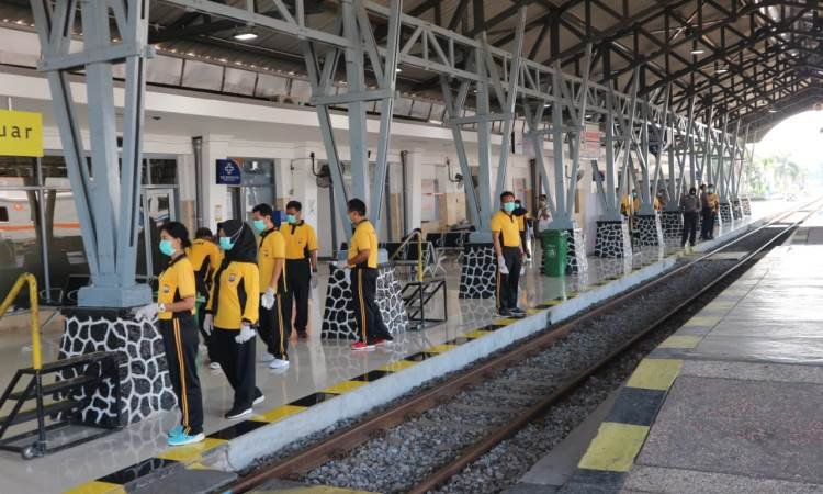 Selain itu ,masyarakat dibagikan masker kepada pengunjung maupun yang baru turun dari kereta api, untuk calon penumpang yang masuk stasiun di periksa dengan Ssnar termometer Infra Red yang diarahkan ke dahi calon penumpang untùk deteksi suhu badan calon penumpang oleh petugas Dokpol.(ke Dokteran Polisi)