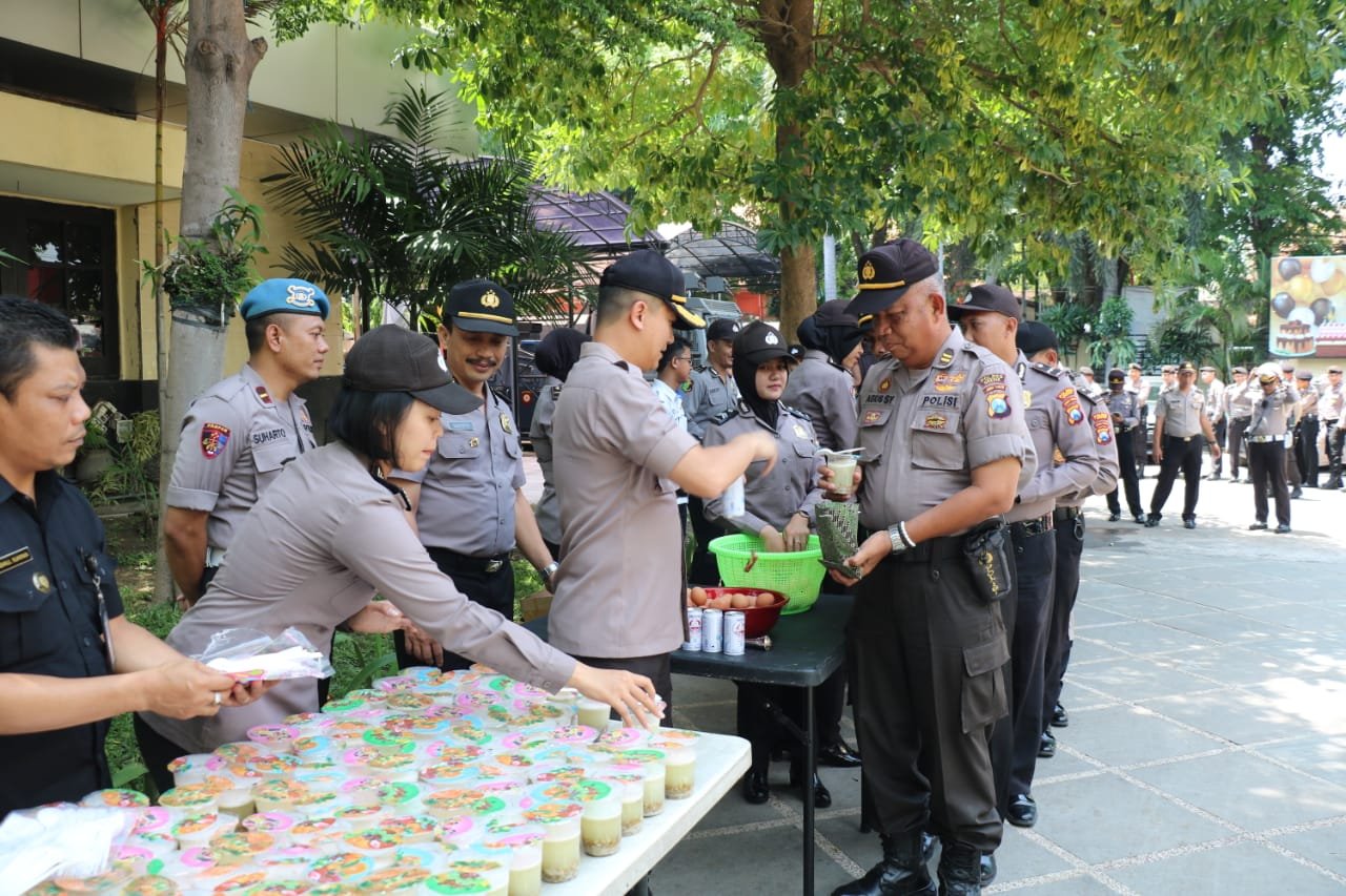 “Peningkatan daya tahan tubuh anggota Polres Gresik dengan memberikan nutrisi tambahan dan vitamin ini sesuai arahan pimpinan Polri dalam teleconference tadi pagi,” terang AKBP Kusworo, Senin (16/3).