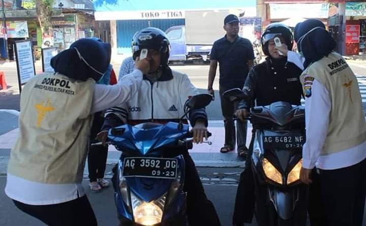 SURABAYAONLINE.CO-Polres Blitar Kota lakukan antisipasi tersebarnya Covid-19 atau yang di kenal dengan Virus Corona, mulai hari ini (Senen 16/3) melakukan pengecekan suhu tubuh termasuk kesehatanya seluruh anggota Polres Blitar Kota yang memasuki Kantor di depan Pos Penjagaan Mako (Markas Komando) oleh petugas Dokpol Polres Bkitar kota didampingi Propam, tidak ketinggalan bagi warga masyarakat yang ada keperluan di Polres Blitar Kota, seperti mencari SIM, di bagian ruang BPKB maupun di Bagian Samsat.