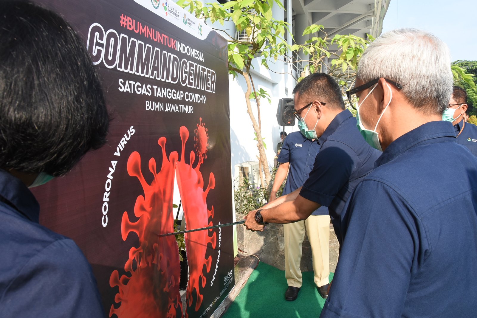 Pengoperasian posko, ditandai dengan penyobekan gambar virus Corona oleh Direktur Utama Perokimia Gresik, Rahmad Pribadi beserta seluruh jajaran direksi menggunakan sebilah pedang sebagai simbol semangat tim Satgas dalam mencegah penyebaran Covid-19.