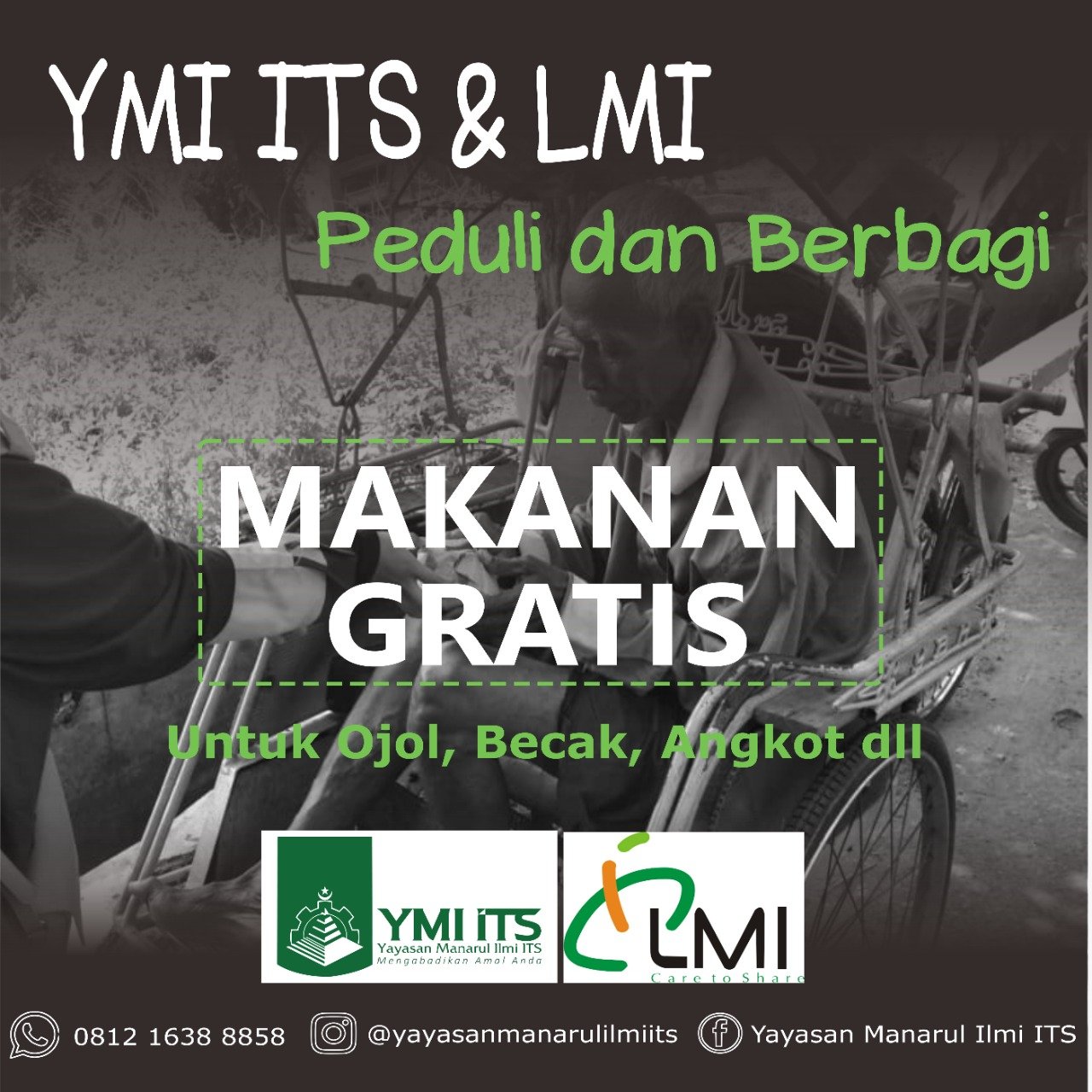 Program Berbagi Makanan Gratis ini merupakan kolaborasi Yayasan Manarul Ilmi (YMI) ITS dan Lembaga Manajemen Infaq (LMI). Kegiatan sosial tersebut diselenggarakan pada hari Rabu (1/4) yang tersebar di lima wilayah, yakni Keputih, Kejawen Gebang, Mulyosari, Gebang, dan Halte Bundaran ITS sebagai pusatnya. Terdapat 200 paket makanan yang diberikan kepada masyarakat terdampak, seperti pengemudi ojek online, tukang becak, petugas kebersihan, sopir angkot, sopir taksi, mahasiswa, hingga penjual makanan keliling.