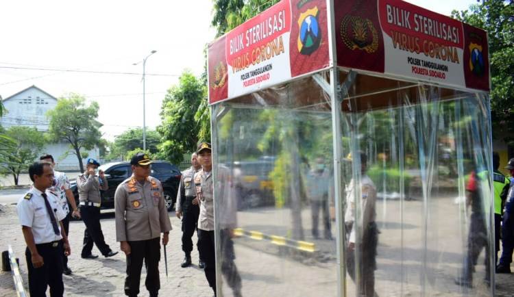 “Di tengah pandemi Virus Corona, kami dari Polri juga telah menghimbau kepada masyarakat agar tahun ini untuk tidak melakukan mudik. Namun, bukan berarti kami tidak melakukan upaya-upaya antisipasi masih adanya pemudik. Salah satunya adalah menyiapkan posko ini, agar masyarakat yang tetap ngotot datang ke Sidoarjo dapat kami lakukan sterilisasi dulu,” jelas Kapolresta Sidoarjo Kombes Pol. Sumardji.(Rino Tutuko)