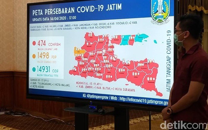 SURABAYAONLINE.CO- Kasus pasien positif Corona atau COVID-19 di Jawa Timur bertambah 36 orang. Kini, ada total 474 pasien positif Corona di Jatim.
