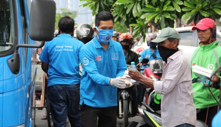 Di samping itu dilakukan juga pembagian nasi kotak yang diberikan kepada pengemudi becak, pengemudi ojek online, para gepeng dan kepada mereka yang membutuhkan. Bambang Priyambadha menyampaikan BNNP Jawa Timur melaksanakan kegiatan ini, mengingat masa pembatasan akibat pandemi Covid-19 sangat berdampak pada seluruh sendi kehidupan terutama perekonomian.