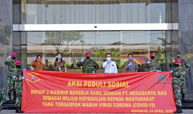 Kegiatan yang terselenggara berkat kerjasama Brigf 2 Marinir dengan PT. Megasurya Mas tersebut dengan membagikan 8.000 paket sembako bagi masyarakat di desa Tambak Sawah dan Tambakrejo, kecamatan Waru, Sidoarjo.