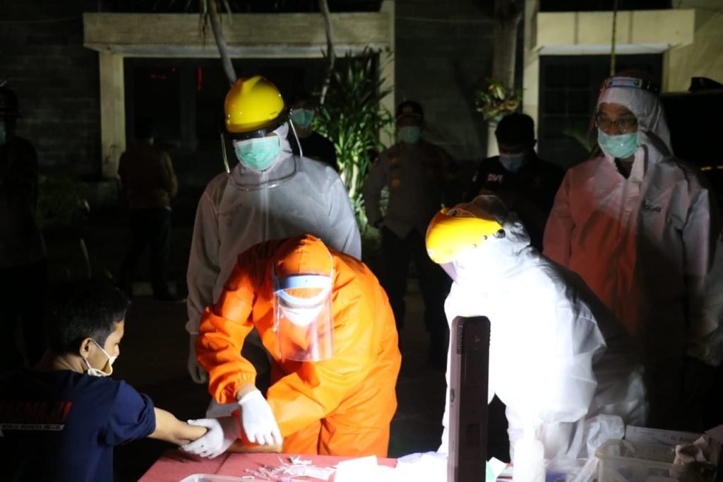 SURABAYAONLINE.CO, GRESIK – Seorang pengunjung warung kopi, terbukti positif Covid-19, setelah menjalani rapid test di Mapolres Gresik, Minggu (3/5) dini hari.