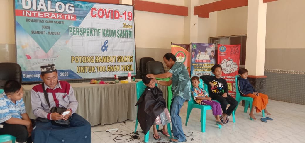 SURABAYAONLINE.CO, Sumenep – Pemuda yang terhimpun dalam Komunitas Kaum Santri (KKS) Kabupaten Sumenep menggelar Dialog interaktif dan Cukur gratis. Kegiatan ini dilaksanakan di Aula Kecamatan Ganding (16/05/20).