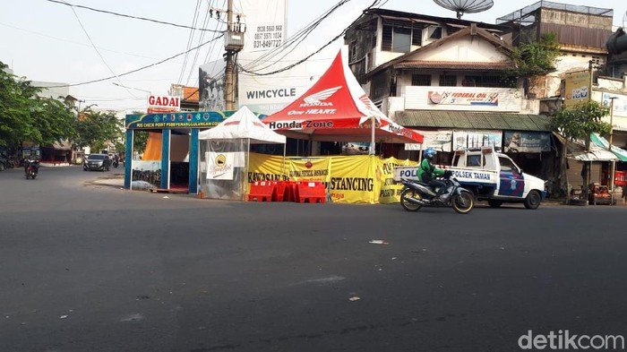 Dari pantauan detikcom sekitar pukul 07.00 hingga 08.00 WIB di check point Sepanjang, tepatnya usai melintas di Jembatan Karangpilang, hanya tampak pikap Polsek Taman dan seorang petugas kepolisian.