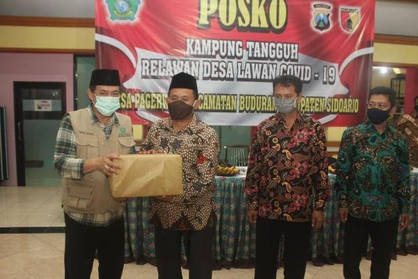 SURABAYAONLINE.CO-Pembatasan Sosial Berskala Besar (PSBB) tahap tiga di Kabupaten Sidoarjo telah berakhir. Meski begitu tidak menyurutkan langkah Kabupaten Sidoarjo untuk membendung penyebaran Covid-19. Pemkab Sidoarjo memilih kebijakan masa transisi new normal setelah berakhirnya PSBB. Penguatan desa kelurahan untuk melawan Covid-19 terus dilakukan di masa transisi new normal kali ini. Penguatan desa kelurahan melalui pembentukan kampung tangguh melawan pandemi Covid-19 salah satunya.