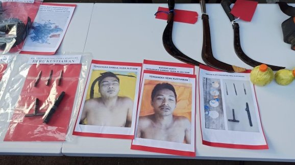 “Kami berikan tindakan tegas terukur terhadap pelaku HK ini, karena dia terus berusaha melarikan diri hingga melawan petugas dengan menggunakan senjata tajam” jelas Kabid Humas.
