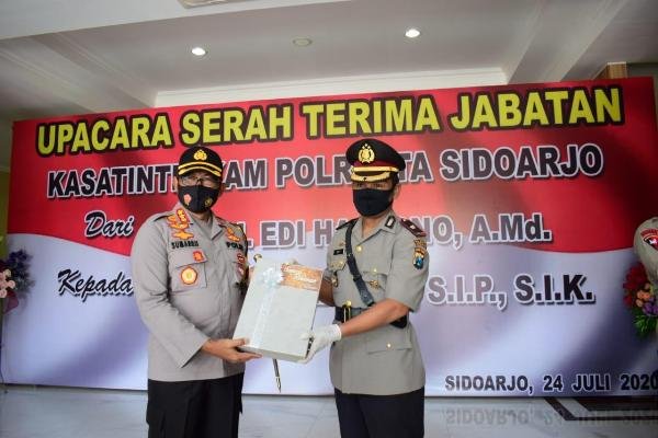 Secara resmi pergantian tersebut, dilakukan dalam upacara serah terima jabatan Kasat Intelkam Polresta Sidoarjo dipimpin Kapolresta Sidoarjo Kombes Pol. Sumardji di Mapolresta Sidoarjo, Jumat (24/7/2020).