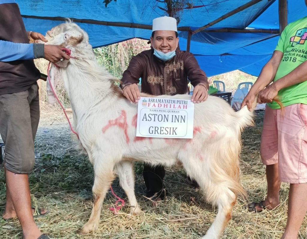 SURABBAYAONLINE.CO, GRESIK – Aston Inn Gresik menyumbangkan dua ekor kambing pada momen Idul Adha 1441 Hijriah, untuk Asrama Yatim Putri Fadhilah yang berlokasi di Jalan Merak, Graha Kembangan Asri Kecamatan Kebomas.