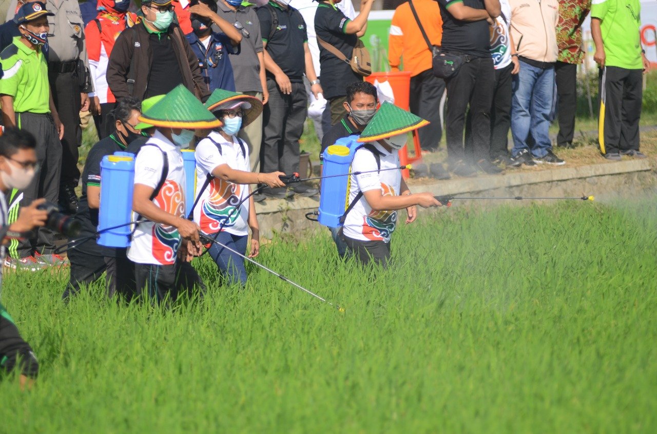 menggelar penyemprotan massal pupuk NPK dan organik cair Phonska Oca di