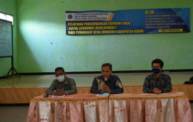 Hal itu juga yang mendasari kegiatan yang dilaksanakan oleh tim pengabdian Jurusan Ekonomi Pembangunan, Fakultas Ekonomi Universitas Negeri Malang bekerjasama dengan pemerintah desa Jongbiru kecamatan Gampengrejo, Kabupaten Kediri melakukan giat pelatihan pengembangan ekonomi lokal (Local Economic Development) bagi masyarakat desa Jongbiru (15/08/2020) dan berlokasi di kantor desa setempat serta dipimpin langsung oleh Ahmad Fawaiq Suwanan,S.E sebagai penyelenggara acara.