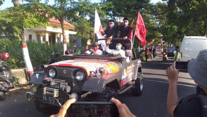 SURABAYAONLINE.CO-Dengan dibukanya pendaftaran Calon Walikota dan Wakil Walikota Blitar oleh KPU.Kota Blitar hari ini (Jumat 4/9) Paslon Santoso dan Tjutjuk Sumariono Pemuda Sumpomo Lingk.Ngegong Kec.Sananwetan Kota Blitar pada pukul 15.45 yang diiringi para pendukungnya, sejak pemberangkatanya dari Posko relawan Santoso Tjutjuk jalan Sumatra Kota Blitar setelahnya Paslon Santoso -Tjutjuk melakukan Dekkarasi kemenangan bersama partai pendukungnya dan Relawan.