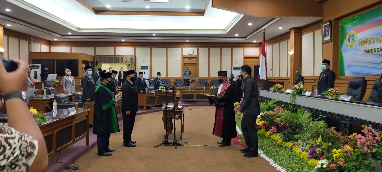 Sebelumnya, Wakil Ketua DPRD Mujid Riduan selaku pimpinan rapat, didampingi Wakil Ketua Ahmad Nurhamim meminta Sekwan Darmawan membacakan SK pemberhetian dan pergantian Ketua DPRD antar waktu.
