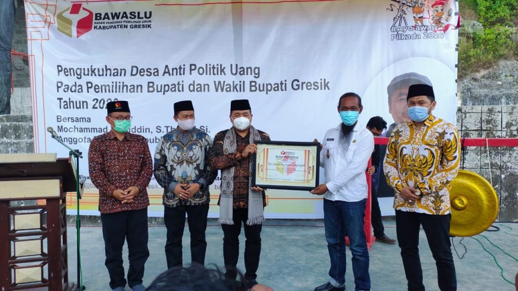 SURABAYAONLINE.CO, GRESIK – Badan Pengawas Pemilihan Umum (Bawaslu) RI bersama jajaran Bawaslu Jatim dan Bawaslu Kabupaten Gresik, Rabu (21/10) sore mengukuhkan Desa Sekapuk Kecamatan Ujungpangkah sebagai Desa Anti Politik Uang.