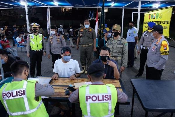 Pada Operasi Yustisi, Jumat (18/12/2020) malam dengan sasaran pengguna jalan dan cafe yang ada disekitaran Jalan KH. Ali Mas’ud didapati 53 pelanggar. Dan langsung dilakukan sidang di tempat kepada para pelanggar.