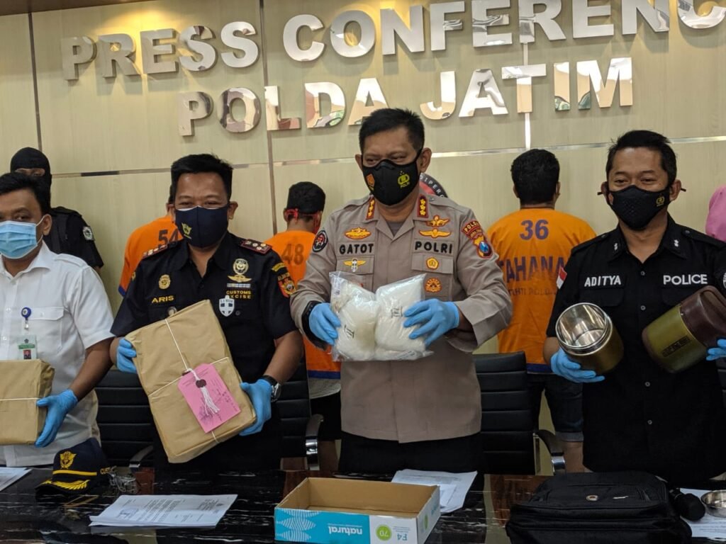 “Penangkapan jaringan ini bermula dari laporan masyarakat tentang adanya pengiriman barang haram dari Malaysia ke Madura yang dikirim dengan sistem ranjau yang di taruh di Hotel Prime Royal” Ucap Dirresnarkoba Polda Jatim Kombes Pol Hanny Hidayat, melalui Kasubdit III AKBP Aditya, Jumat (08/01/2021).