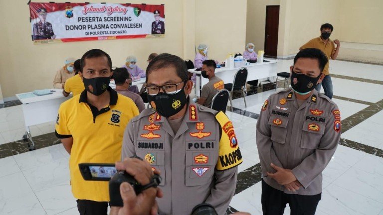 “Di tengah terus bertambahnya angka penyebaran Covid-19, kami lakukan screening donor darah plasma bagi anggota yang sudah sembuh dari Covid-19, nantinya mereka yang memenuhi syarat dapat diteruskan proses donor darahnya. Hal ini sebagai wujud kepedulian Polri bagi masyarakat yang sedang terpapar virus ini,” ujar Kapolresta Sidoarjo Kombes Pol. Sumardji.