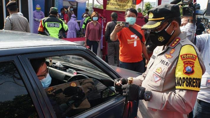 Kapolresta Sidoarjo Kombes Pol. Sumardji menjelaskan, pihaknya bersama Forkopimda Sidoarjo mulai 12 Februari 2021 sampai dengan 14 Februari 2021 melakukan pemeriksaan kesehatan masyarakat dari luar kota Sidoarjo melalui identifikasi nopol kendaraan.