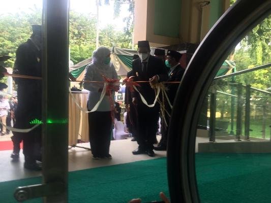 SURABAYAONLINE.CO – Gubernur Jawa Timur Khofifah Indar Parawansa meresmikan travelator Masjid Agung Sidoarjo (MAS), Senin (1/3/2021). Peresmian travelator ini, ditandai dengan pemotongan pita oleh Gubernur Khofifah yang didampingi Bupati Sidoarjo Ahmad Muhdlor Ali (Gus Muhdlor), Wakil Bupati Sidoarjo Subandi, dan Ketua MUI Kabupaten Sidoarjo KH. Salim Imron.