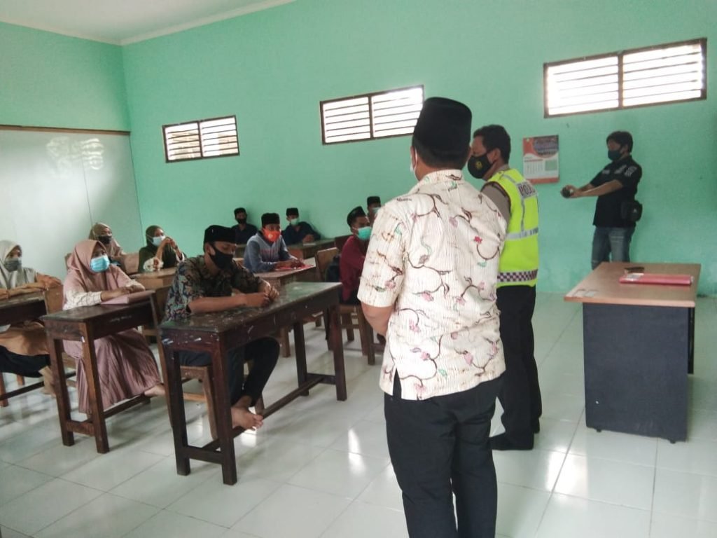 Ka SPK Aiptu Harinyanto didampinggi Kasihumas Aipda Yones dan Bripka Iwan mengatakan untuk program disiplin prokes pihaknya menyambangi Pondok Mambaul Ihsan serta SMK Mambaul ihsan di Desa Banyu Urip.