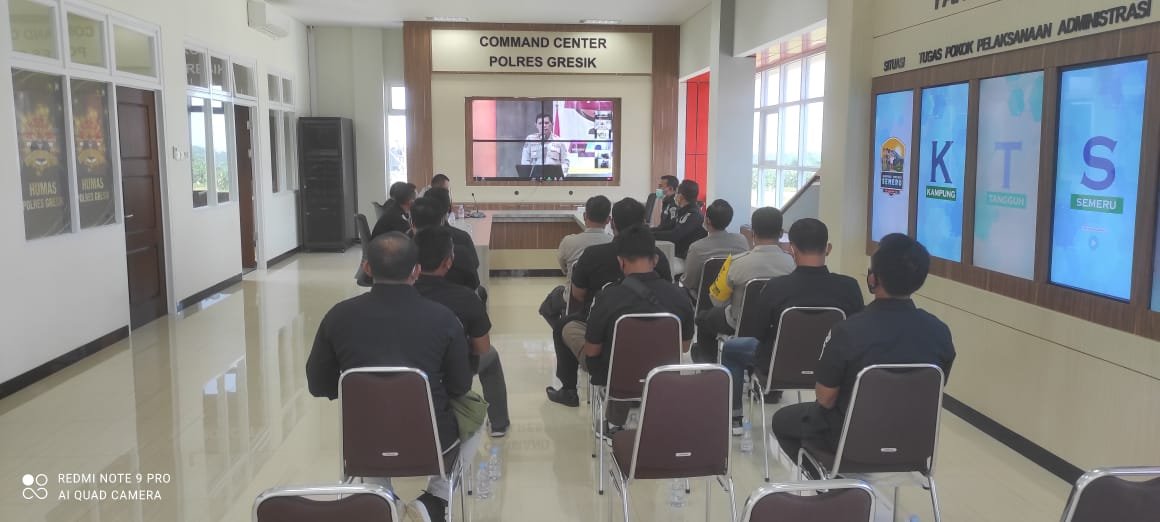 Sedangkan pada saat yang sama, Kasi Humas jajaran mengikuti secara virtual zoom meeting dari Comand Centre Mapolres Gresik dipimpim Kabag Ops Kompol Zaenal Arifin.
