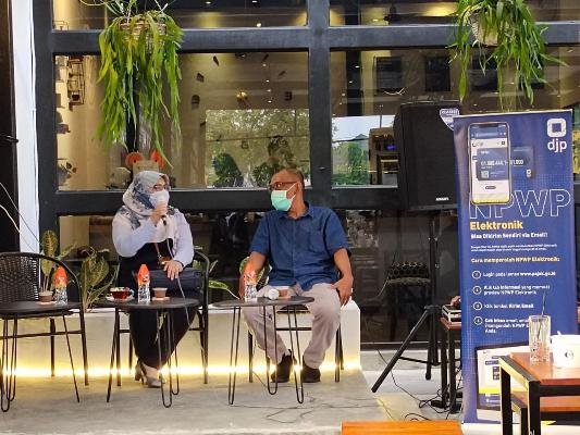 SURABAYAONLINE.CO-Forum Wartawan Sidoarjo (Forwas) menggelar ngopi santai bersama DJP Jatim II di Cafe AMPM Kavling DPRD Sidoarjo, Rabu (24/3/2021). Kegiatan tersebut dihadiri Kabid P2 Humas Takari Yoedaniawati, Kasi Bimbingan penyuluhan