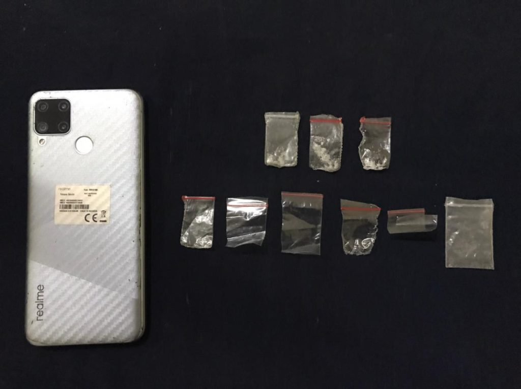 Dalam penggeledahan dilokasi kejadian pihak Kepolisian berhasil mengamankan sejumlah barang bukti yaitu, tiga poket/kantong plastik klip kecil berisi Narkotika jenis sabu, satu plastik klip kecil sebagai bungkus Sabu dan lima plastik klip kosong, satu unit Hand phone merk Realme warna Silver.