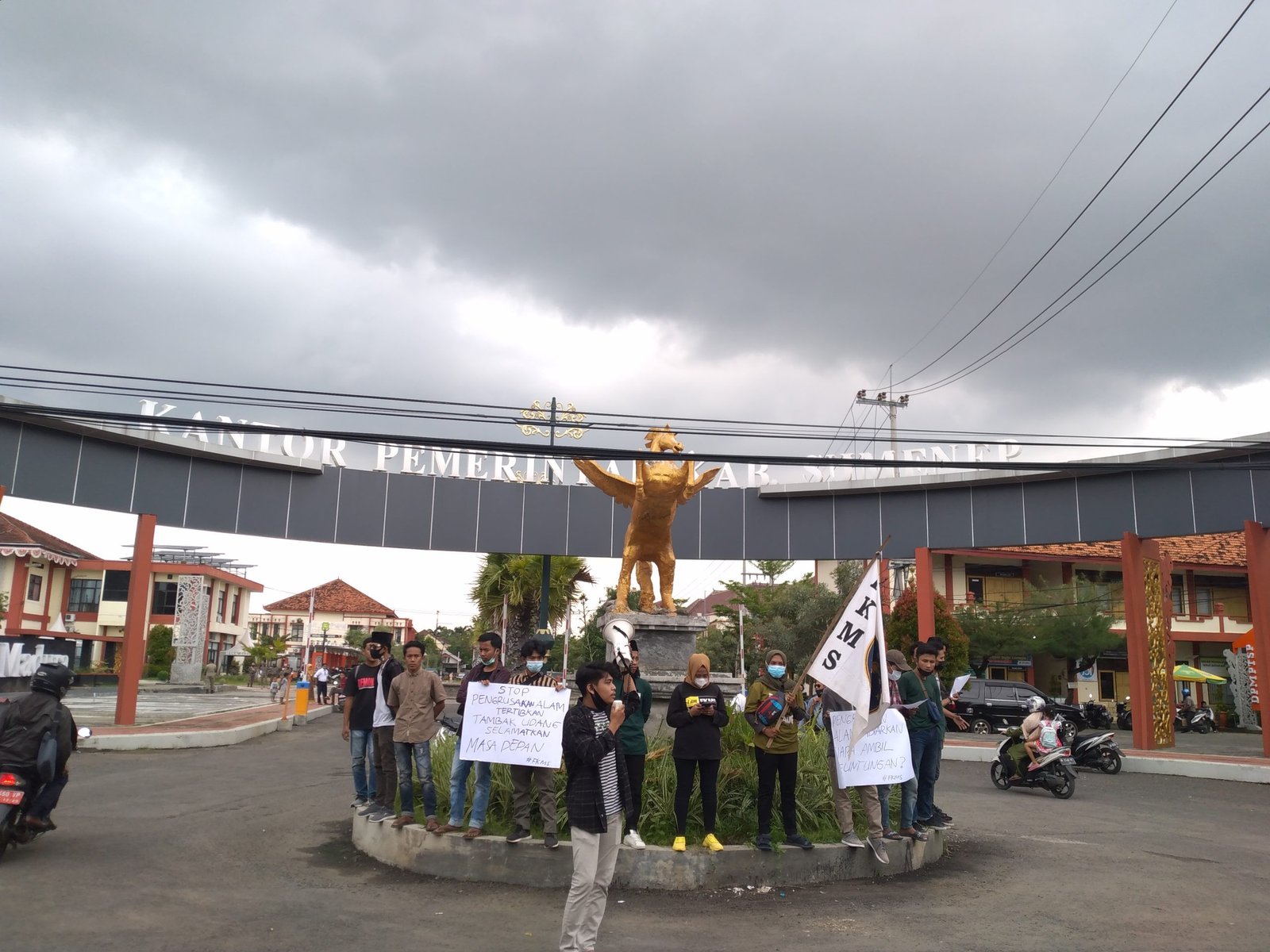 SURABAYAONLINE.CO, Sumenep– Sejumlah mahasiswa yang tergabung kedalam Front Keluarga Mahasiswa Sumenep (FKMS), menggelar aksi demonstrasi di depan gedung Pemerintah Kabupaten Sumenep, Madura, Jawa Timur