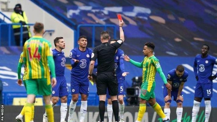 Malapetaka bagi The Blues, Thiago Silva diusir wasit pada menit ke-29.