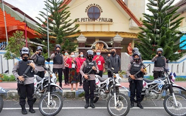 Dalam patrolinya dua peleton Polwan yang di pimpin Kasat Sabhara AKP.Rudy Prabowo S.IK MM tersebut menggunakan kendaraan bermotor roda dua, selain di bekali senpi laras panjang juga rompi hitam mereka nantinya melakukan tugas mobiling patroli ke gereja-gereja yangg masih lakukan kegiatan ibadah termasuk obyek-obyek vital.