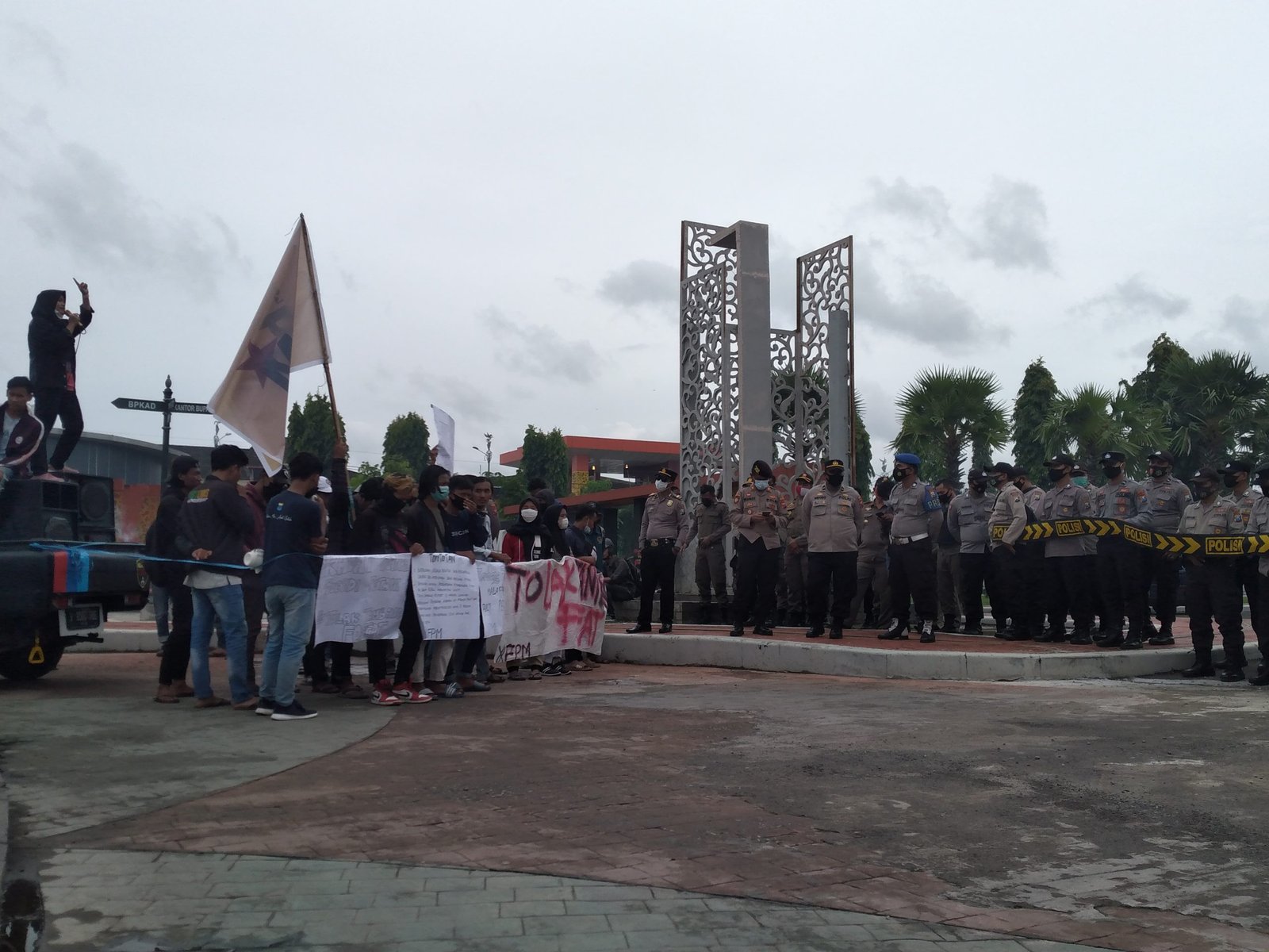 Aksi demonstrasi mahasiswa ini sendiri digelar didepan Kontor DPRD Kabupaten Sumenep dan Kantor Pemerintah Kabupaten Sumenep (Pemkab) sekira pukul 11.00 Wib