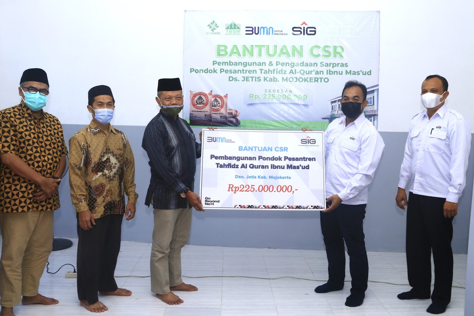 SURABAYAONLINE.CO, GRESIK – Pondok Pesantren (Ponpes) Tahfidz Al-Quran Ibnu Mas’ud Desa Jetis Kecamatan Jetis Kabupaten Mojokerto, Jawa Timur, mendapat bantuan dana sebesar Rp 225 juta dari PT Semen Indonesia (Persero) Tbk (SIG) melalui program SIG-Peduli.