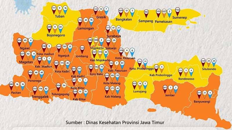 Berikut Daftar Covid-19 di Kabupaten/Kota di Jawa Timur: