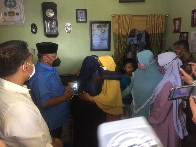 SURABAYAONLINE.CO -Ikut berbela sungkawa Anggota Komisi III DPR RI Rahmat Muhajirin bersama istrinya Mimik Idayana mendatangi rumah duka juru mudi 1 KRI Nanggala 402, Sertu Bah Yoto Eki Setiawan, Selasa (27/4) siang. Isak tangis Mita Sofia Kurniaviratama, istri Yoto langsung pecah saat Mimik Idayana memeluknya.
