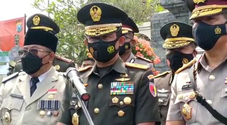Mengakhiri kunjunganya Pangdam di dampingi Waka Polda Jawa Timur memberikak keterangan Pers di depan Wartawan yang berada di pelataran halaman Makam Bung Karno.