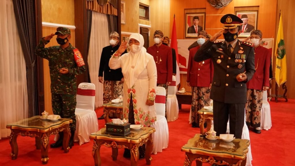Tidak terkecuali seluruh jajaran Pemerintah Daerah (Pemda) Kabupaten Sumenep, Madura, Jawa Timur, Mulai dari Wakil Bupati Hj Dewi Khalifah, seluruh jajaran Forum Komunikasi Pimpinan Daerah (Forkopimda) dan Organisasi Perangkat Daerah (OPD) juga mengikuti kegiatan tersebut, di Ruang VIP Rumah Dinas Bupati, Selasa (01/06/2021).