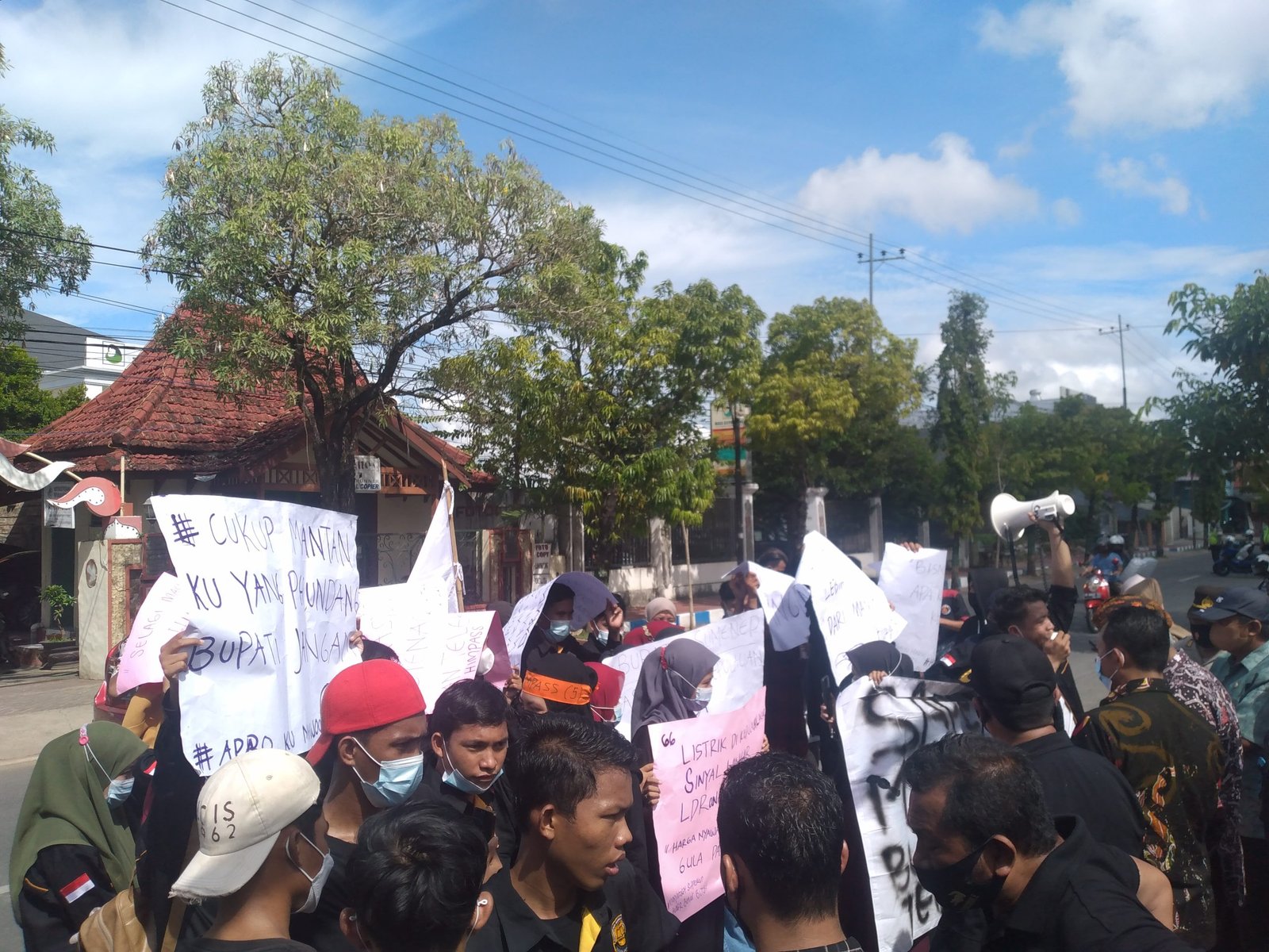 SURABAYAONLINE.CO, Sumenep- Sejumlah mahasiswa tergabung kedalam Himpunan Mahasiswa Kepulauan Sapeken (Himpass) menggelar demonstrasi di depan kantor Pemerintah Kabupaten Sumenep, Madura, Jawa Timur