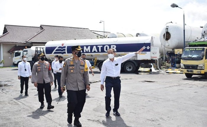 Kapolresta Sidoarjo Kombes Pol. Kusumo Wahyu Bintoro mengatakan, pengecekan ke stasiun pengisian oksigen kali ini untuk memastikan kondisi kamtibmas aman kondusif, khususnya dalam hal ini terkait ketersediaan dan arus pendistribusian oksigen ke 19 rumah sakit rujukan Covid-19 aman.