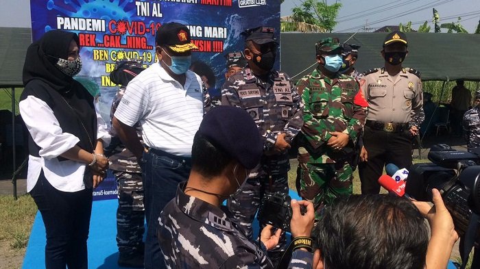 Kegiatan vaksin massal dengan target 1.000 orang ini, ditinjau oleh Komandan Lantamal V Laksamana Pertama TNI Yoos Suryono Hadi didampingi Rahmat Muhajirin SH anggota komisi II DPR RI dari F Gerindra.
