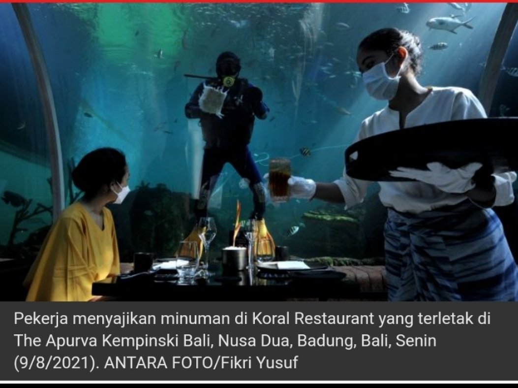 SURABAYAONLINE.CO, Bali – Pekerja beraktivitas di Koral Restaurant yang terletak di The Apurva Kempinski Bali, Nusa Dua, Badung, Bali, Senin (9/8/2021). Restoran dengan nuansa akuarium yang menampung sekitar 2.400 ekor ikan dengan 63 jenis ikan tersebut dinobatkan sebagai “Picture-Perfect Restaurants” nomor satu di dunia versi Travelers’ Choice Best of the Best tahun 2021 di situs TripAdvisor. ANTARA FOTO/Fikri Yusuf.