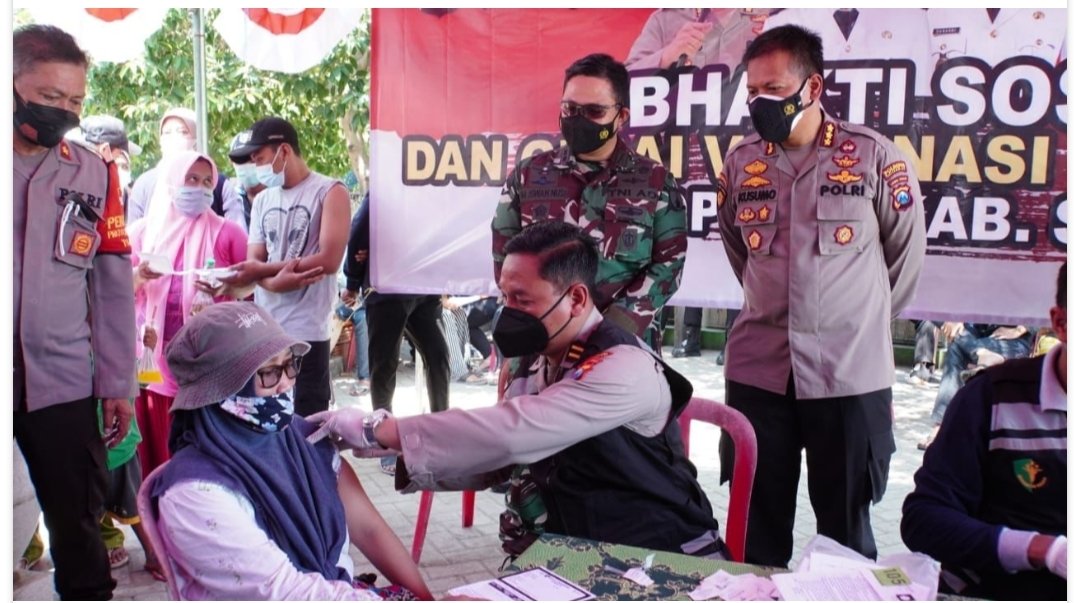 Kapolresta Sidoarjo Kombes Pol. Kusumo Wahyu Bintoro bersama Wakil Bupati Sidoarjo Subandi serta Dandim 0816 Sidoarjo Mohammad Iswan Nusi kompak turun langsung menyapa warga Kepetingan. Selain memantau pelaksanaan vaksinasi Covid-19, pada kesempatan ini Forkopimda Sidoarjo juga menyalurkan bantuan sosial paket sembako kepada warga Dusun Kepetingan.