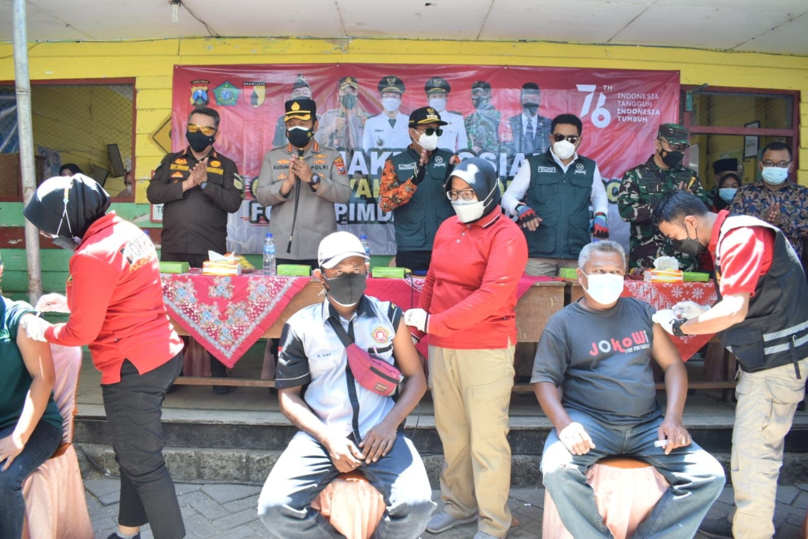 Kapolresta Sidoarjo Kombes Pol. Kusumo Wahyu Bintoro bersama Bupati Sidoarjo, Wakil Bupati Sidoarjo, Dandim 0816 Sidoarjo, Kajari Sidoarjo kompak turun bareng guna bersilaturahmi warga Kalialo. Selain memantau pelaksanaan vaksinasi Covid-19, pada kesempatan ini Forkopimda Sidoarjo juga menyalurkan bantuan sosial paket sembako kepada warga Kalialo.