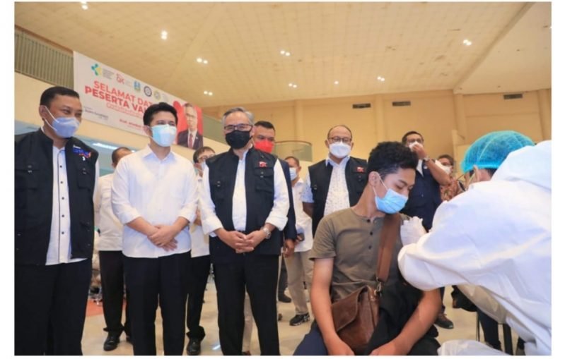 “Upaya ini terus kita dorong supaya vaksinasi ini bisa cepat menjangkau lebih banyak masyarakat,” kata Wagub Emil saat mendampingi Ketua Dewan Komisioner Otoritas Jasa Keuangan (OJK) RI Wimboh Santoso bersama Kepala OJK Regional 4 Jatim Bambang Mukti Riyadi meninjau pelaksanaan “Vaksinasi Terimakasih” di Airlangga Convention Center (ACC) di Jl. Dr. Ir. Soekarno Mulyorejo Surabaya, Sabtu (4/9).