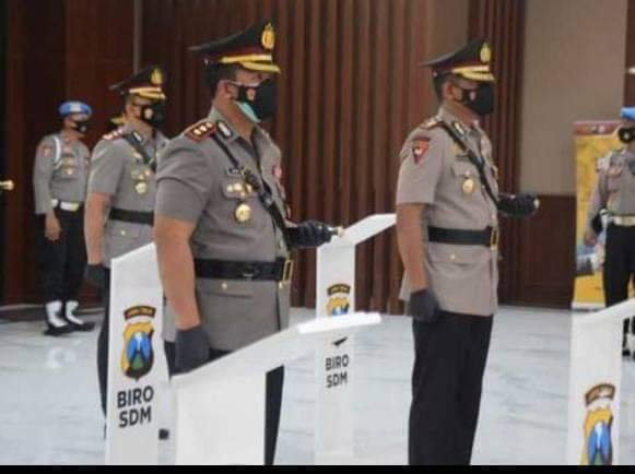 Diketahui, AKBP Apip Ginanjar yang sebelumnya menjabat sebagai Kapolres Pamekasan Polda Jatim dipromosikan jabatan yang baru sebagai Kapolres Mojokerto, Polda Jatim sedangkan AKBP Rogib Triyanto yang sebelumnya menjabat sebagai Kasubbagprogar Bagren Korbrimob Polri dipromosikan jabatan yang baru sebagai Kapolres Pamekasan Polda Jatim. (Gogo)