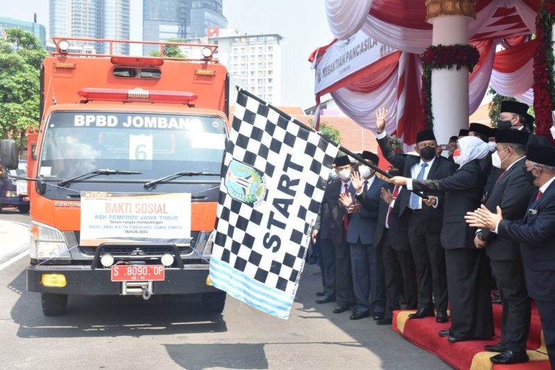 Pelepasan pengiriman bantuan dilakukan Gubernur Jawa Timur, Khofifah Indar Parawansa, di Gedung Negara Grahadi, Jumat (1/10). Menurut gubernur, bantuan ini merupakan aksi sosial di setiap Organisasi Perangkat Daerah (OPD).